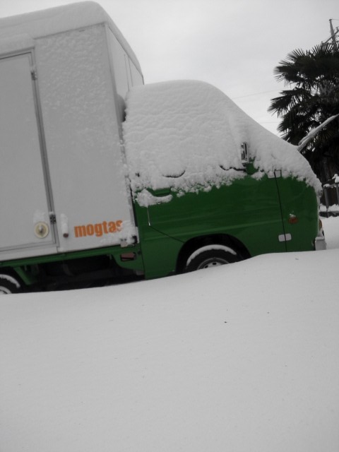 積雪たっぷりの駐車場から、
