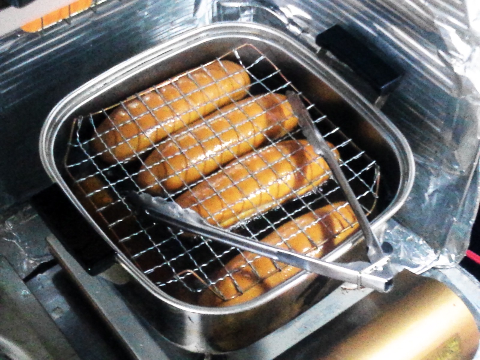とのことで、網焼き用の網で押さえ