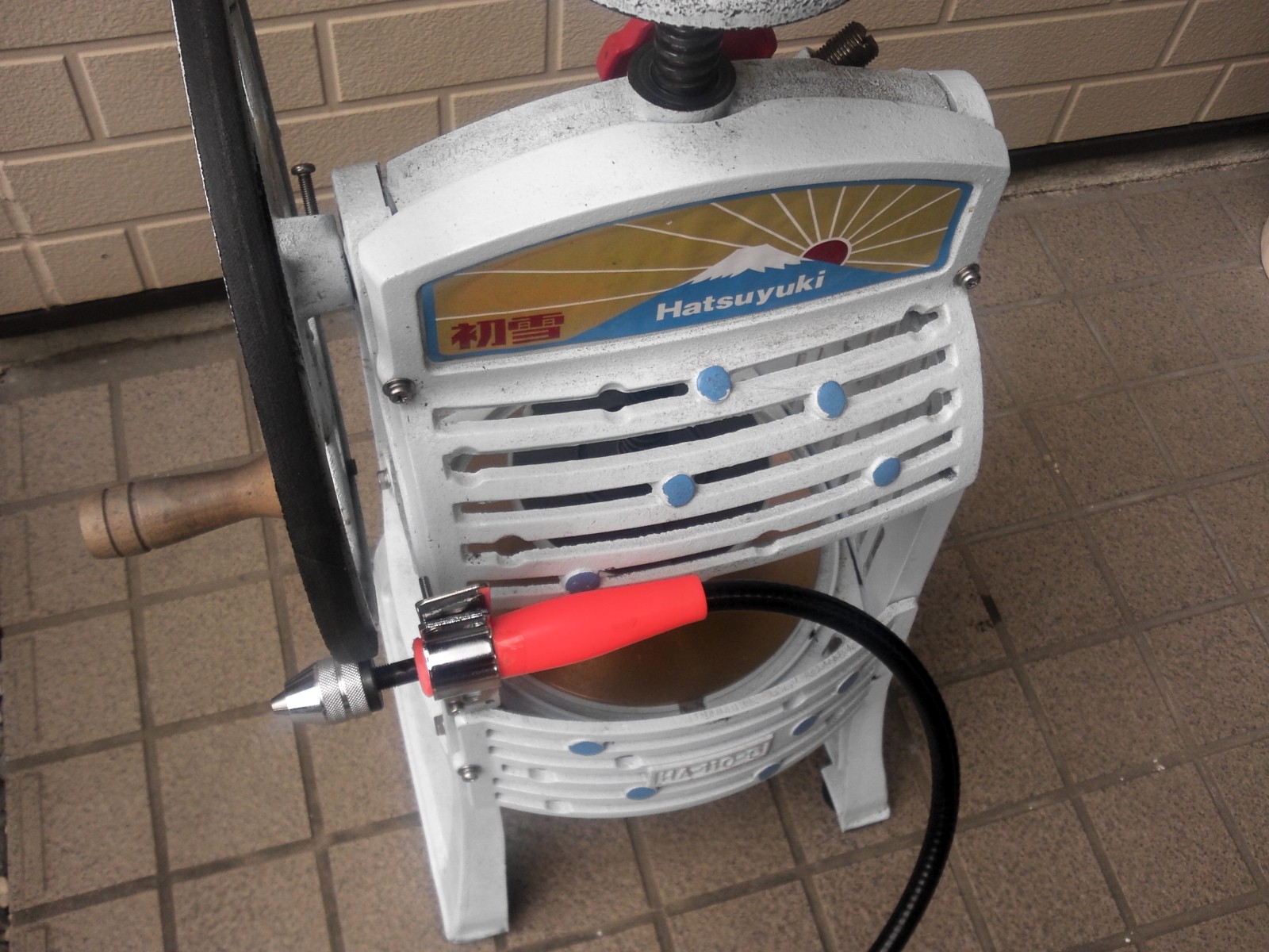 かき氷機にドリルで穴明けして