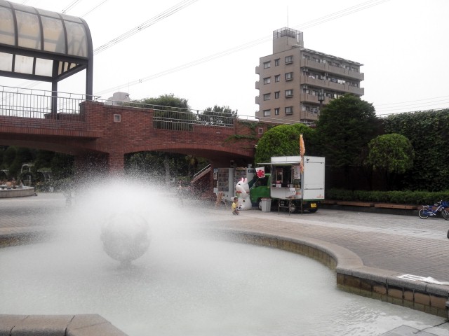 土曜日に噴水のある公園で