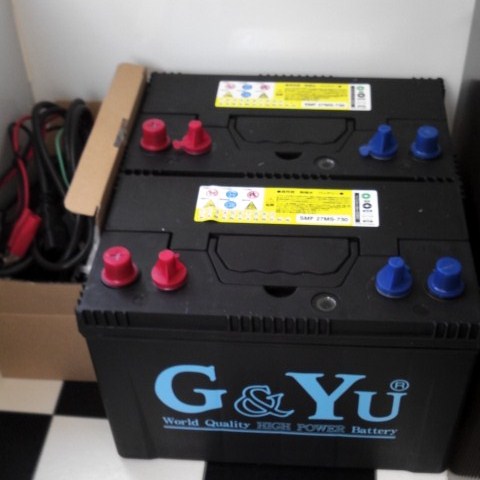 して、115Ahのタイプを2個購入し、並列に接続。