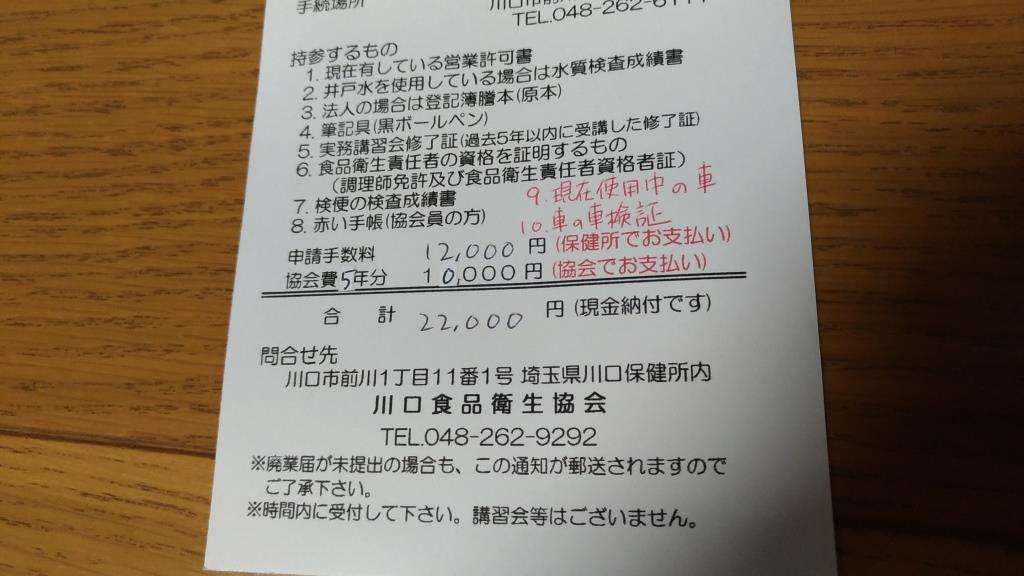 というわけで、営業許可更新