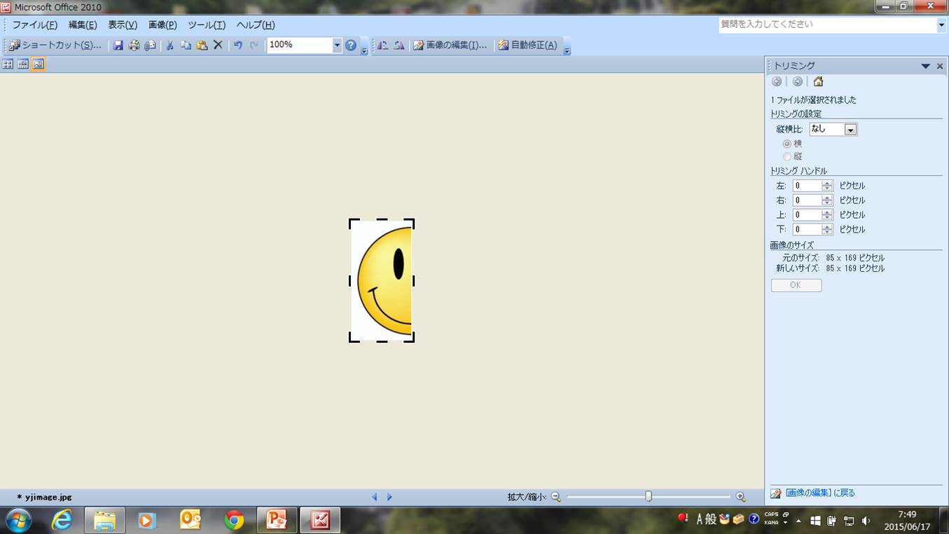 パワーポイントでトリミングした